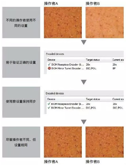 BX3M采用了新的編碼功能,將顯微鏡的硬件設置與奧林巴斯Stream圖像分析軟件整合在一起。觀察方法、照明強度和物鏡位置全都記錄在軟件和/或手動控制器里。編碼功能使顯微鏡設置能夠與每幅圖像一起自動保存,從而使此后還原設置,以及為報表提供文檔記錄更加方便。既節(jié)省了操作者的時間,減小了使用不正確設置的概率。當前的觀察設置總是清晰地顯示在手動控制器和軟件上。