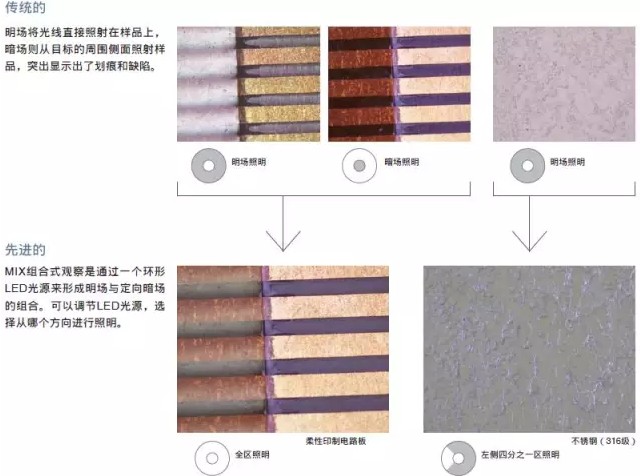 BX3M的MIX組合式觀察技術組合了明場和暗場照明方法。對突出顯示缺陷和區(qū)分隆起與凹陷表面很有用處。