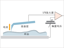 對樣品施加偏置電壓,檢測出微懸臂與樣品之間的電流并輸出影像。此外,還可以進(jìn)行I/V測量。