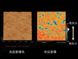 • 表面電位模式(KFM)*: 在影像中呈現(xiàn)樣品表面的電位