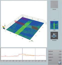 由于采用405 nm的短波長激光和更高數(shù)值孔徑的物鏡, OLS4500達(dá)到了0.12 μm的平面分辨率。因此, 可以對樣品的表面進(jìn)行亞微米的測量。結(jié)合高精度的光柵讀取能力和奧林巴斯獨(dú)有的亮度檢測技術(shù), OLS4500可以分辨出亞微米到數(shù)百微米范圍內(nèi)的高度差。此外, 激光顯微鏡測量還保證了測量儀器的兩大指標(biāo)——“正確性”(測量值與真正值的接近程度)和“重復(fù)性”(多次測量值的偏差程度)的性能。